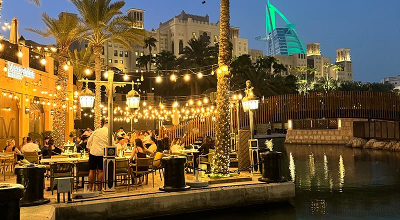 Sitting pretty in Souk Madinat Jumeirah, Mezzanine Bar & Kitchen is exactly where you want to be when you’re after relaxed vibes with a side of great views. Overlooking the waterways, with the Burj Al Arab peeking out in the background, it feels casual and welcoming, whether you’re popping in after a wander around the Souk or settling in for a long, leisurely meal. Think classic gastropub energy, but in a very Dubai setting, best of both worlds we think?