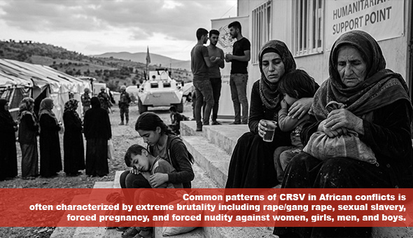 Throughout Africa’s modern history, CRSV has been systematically employed by both state and non-state actors as a deliberate weapon of war, targeting civilians (perceived enemies or adversaries) based on their ethnic, religious, or/and political affiliations. Common patterns of CRSV in African conflicts is often characterised by extreme brutality including rape/gang rape, sexual slavery, forced pregnancy, and forced nudity against women, girls, men, and boys. It is frequently committed during or around military operations to punish, intimidate, control communities and deliberately dismantle social structures.