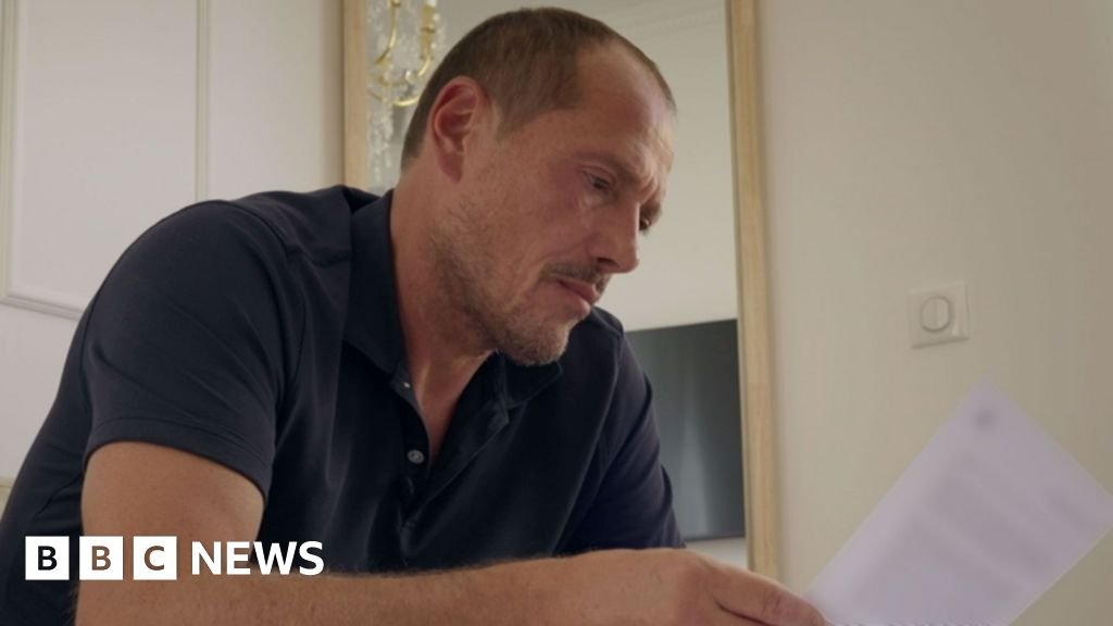 BBC A man with short, light brown hair and stubble looks at a piece of paper. He is wearing a dark blue, short-sleeved polo shirt. BBC