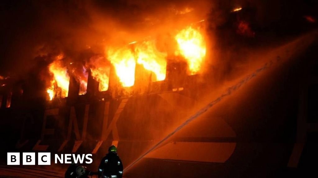 Video footage of the attack’s aftermath, which was shared on Zelensky’s Telegram account, shows crews attempting to extinguish a large blaze on the vessel.